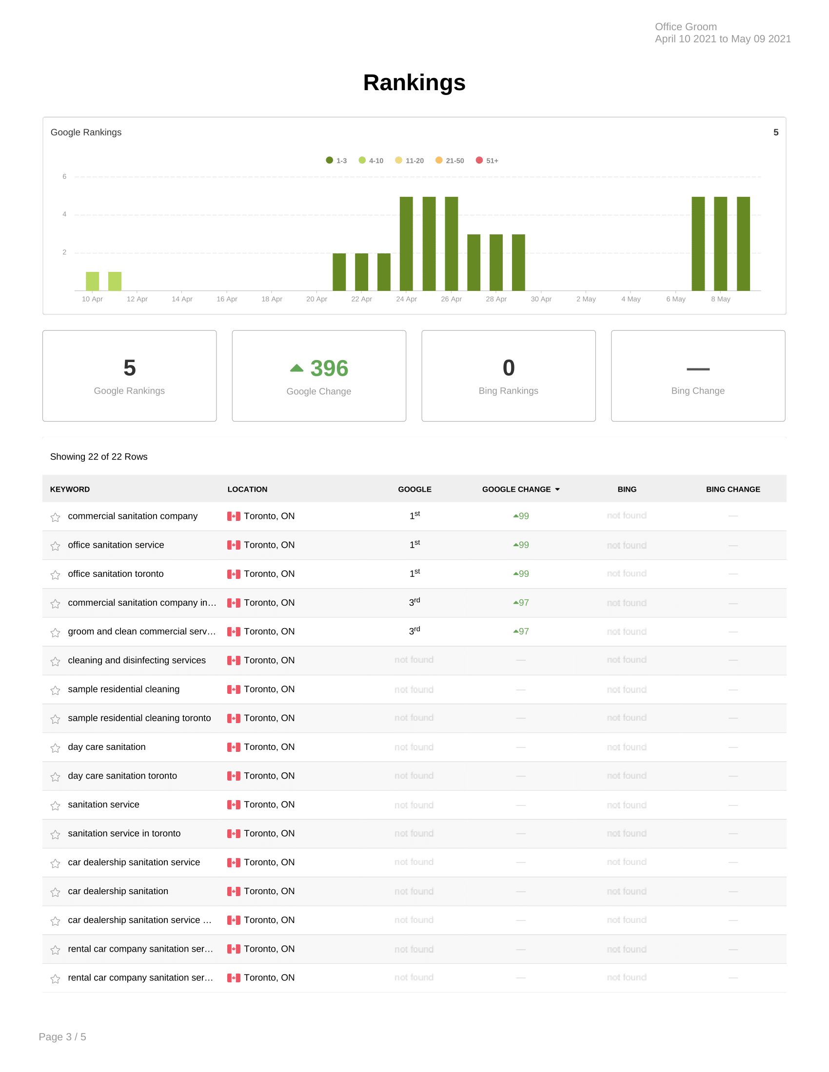 Client succeeded to reach Google Maps first position on 5 keywords within 74 days and on top 3 position of several keywords within 90 days from our start date.