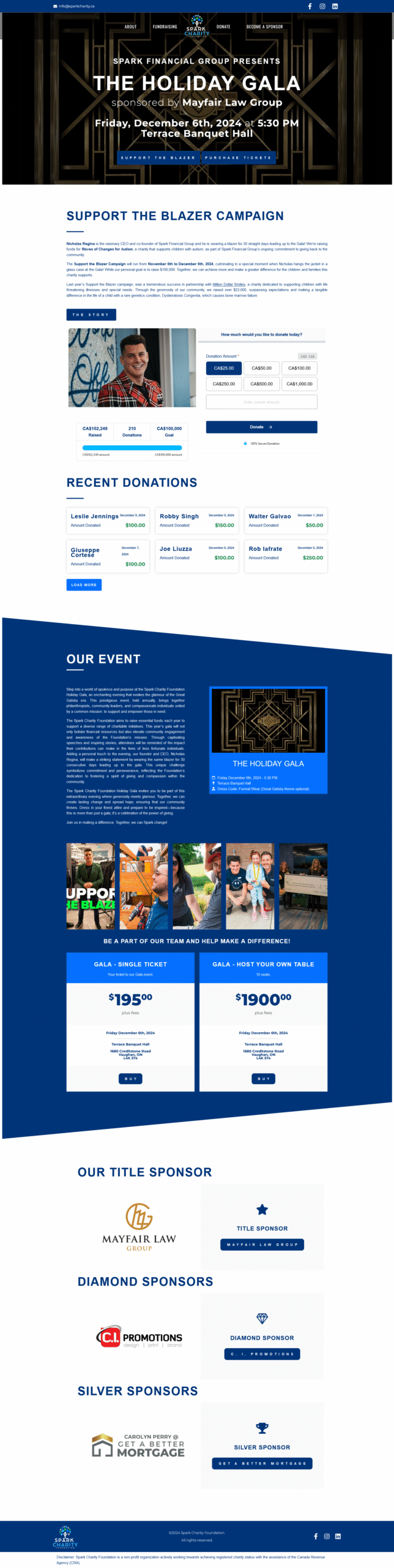 An informational and functional website was designed to serve as a comprehensive resource for the charity foundation and its Holiday Gala event. It includes detailed information about the foundation and event, along with outgoing links for ticket purchases and integrated donation functionality, all designed to support the charity’s initiatives and enhance user engagement.